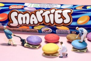 Winzige Mini-Arbeiter pinseln fleißig jede Kugel bunt an – Schicht für Schicht, mit höchster Farbpräzision. Erst wenn die Smarties strahlen wie Regenbogenperlen, werden sie sorgsam