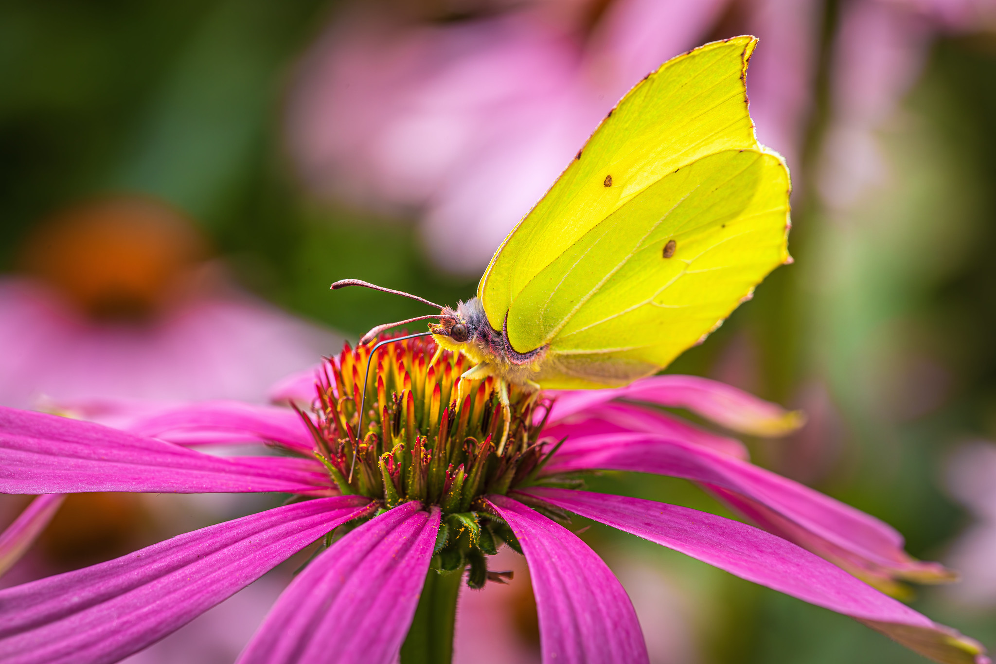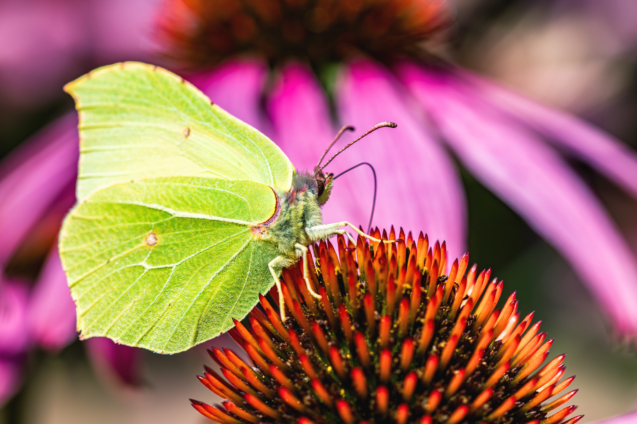 Der Zitronenfalter ist ein kleiner fliegender Sonnenstrahl mit zitronengelber Flügelpracht. Sein wissenschaftlicher Name klingt fast wie ein Zauberspruch. Gonepteryx rhamni. Er flattert schon früh im Jahr durch die Luft und ist oft einer der ersten Boten des Frühlings. Man kann ihn von März bis in den späten Herbst hinein beobachten. Und das Beste. Er ist ein echter Überlebenskünstler. Denn er schläft nicht irgendwo in einer fernen Tropenhängematte sondern gleich hier bei uns. Oft gut getarnt zwischen welken Blättern. Dort trotzt er frostigen Wintern und erwacht wieder wenn die ersten Sonnenstrahlen den Boden wärmen. Wer ihn sieht sollte ihm am besten zuwinken. Vielleicht flattert er sogar kurz für ein Foto in Pose.