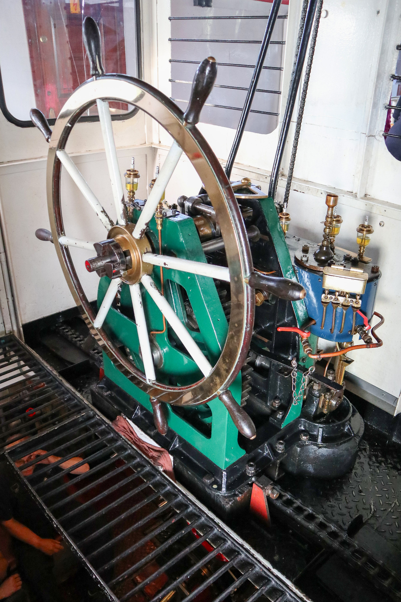 Das spannendste ist für mich der Maschinenraum. Da sieht man wie die gewaltige Dampfmaschine arbeitet und wie die Kohle geschaufelt wird. Man merkt sofort dass das keine leichte Arbeit ist. Heiße Luft. Glühende Kohlen. Schweiß auf der Stirn. Da bekommt man Respekt vor den Leuten die den Kessel am Laufen halten.