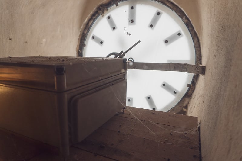 Zum Beispiel die Rückseite der Turmuhr. Sehr faszinierend. Man sollte allerdings kein Problem mit Spinnen haben. Spinnweben gibt es reichlich und vielleicht schaut auch mal eine Spinne neugierig vorbei. Für manche Menschen sicher ein kleiner Nervenkitzel.