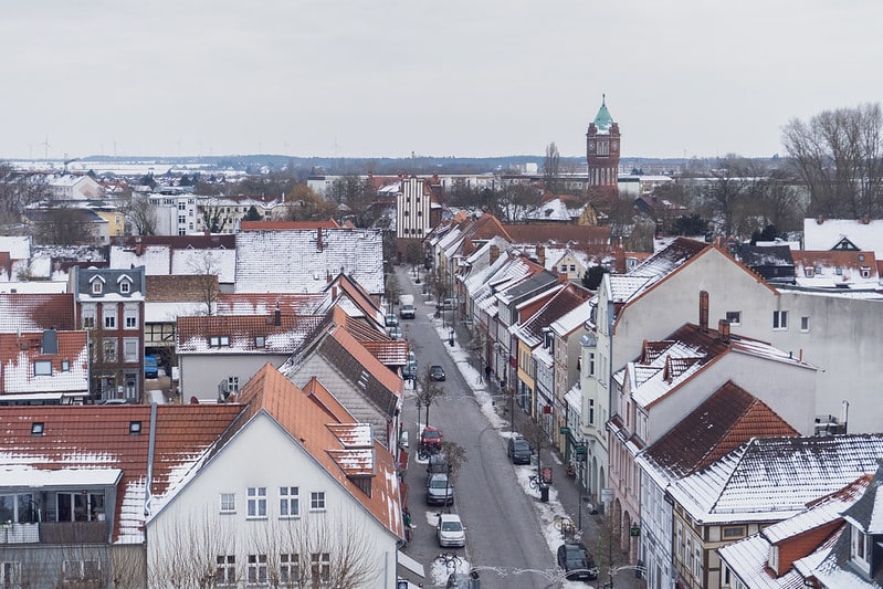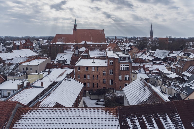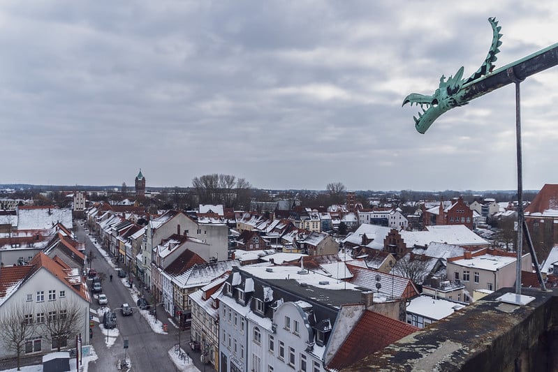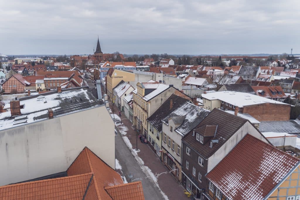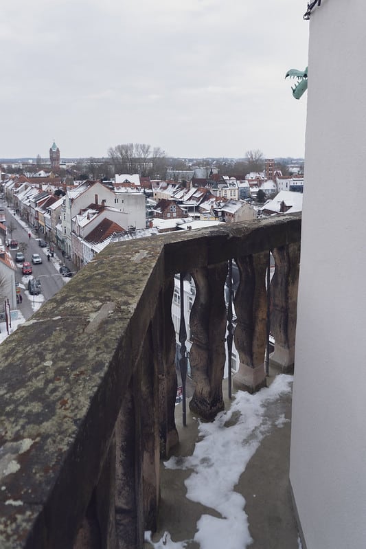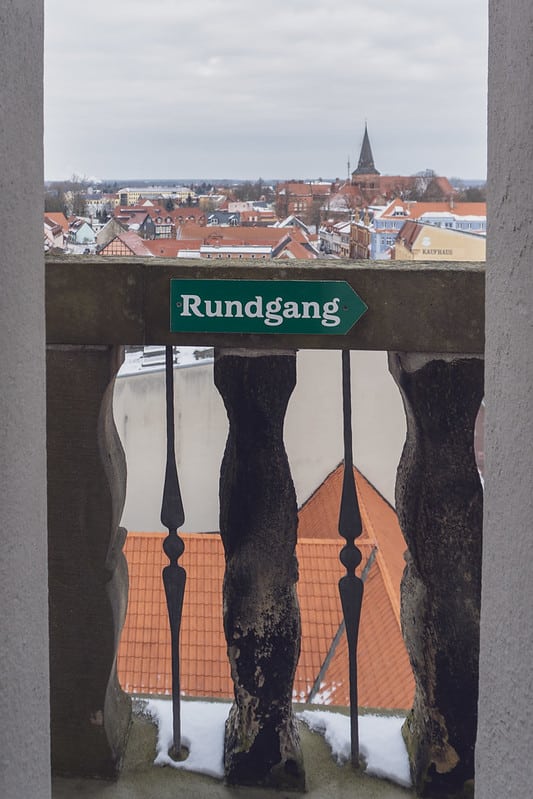 Und dann dieser Blick. Ganz Salzwedel liegt einem zu Füßen. Schneebedeckte Dächer der Wasserturm das Neuperver Tor und gleich drei Kirchen sind wunderbar zu erkennen. Man fühlt sich ein bisschen wie ein Stadtwächter nur ohne Rüstung aber mit kalten Ohren.