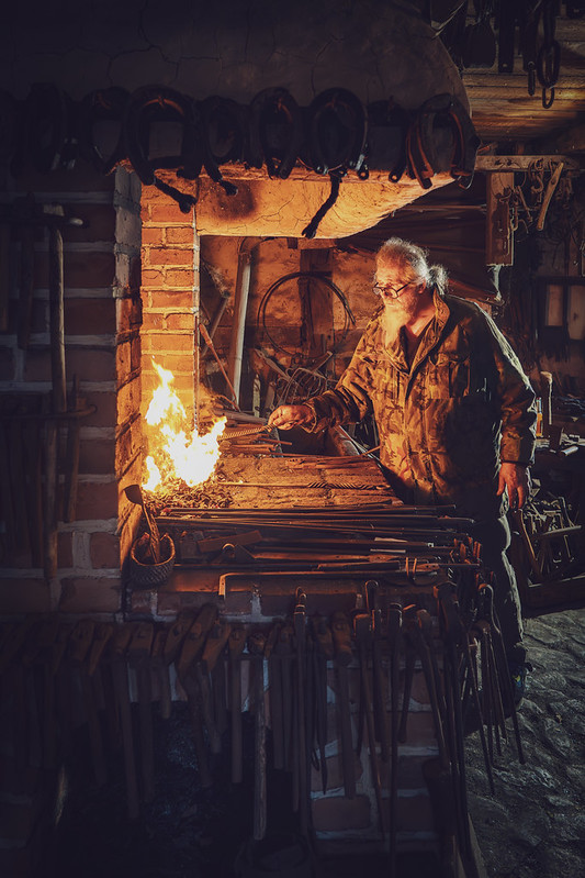 Ganz einfach war das Fotografieren für mich allerdings nicht denn das Licht in der Schmiede war eher sparsam. Doch genau das machte den Reiz aus. Mit Geduld und ein wenig Experimentierfreude habe ich dennoch einige richtig schöne Aufnahmen einfangen können.